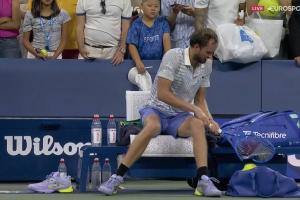 赛后梅德韦杰夫怒砸球拍,砸了个稀巴烂。这是他又一次大满贯一轮游,今年法网、温网、美网他均遭一轮游。