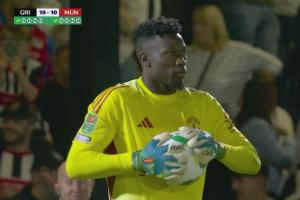体育资讯08月28日讯 曼联vs格林斯比,格林斯比点球12-11战胜曼联,格林斯比13粒点球,奥纳纳仅扑出1粒。