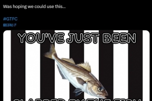 格林斯比晒出了一张玩梗图,上面是一条鱼,配文写道:“你刚刚被鱼扇了一巴掌。”格林斯比写道:“原本想我们可以用这张图……”