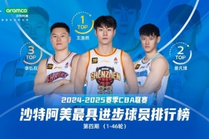 原文写道:“【2024-2025赛季CBA联赛第1-46轮沙特阿美最具进步球员排名第一——王浩然】王浩然效力于深圳新世纪烈豹篮球俱乐部 ,在三年级赛季有明显进步。王浩然在常规赛出战44场,场均上场28.9分钟,能够得到11.3分、3.5篮板、2.0助攻(三项数据均为生涯新高)。王浩然场均得分在队内本土球员中仅次于贺希宁和周鹏。恭喜王浩然在2024-2025赛季CBA联赛第1-46轮沙特阿美最具进步球员排名中名列第一!”