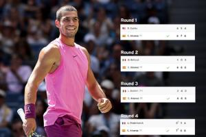阿尔卡拉斯至今5轮未丢一盘,若能延续状态,他将有望成为史上首位不失一盘夺得美网男单冠军的球员!