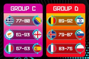 体育资讯09月03日讯 男篮欧锦赛当地时间9月2日的6场小组赛全部结束,详细赛果如下: