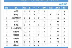 在成绩最好的小组第二排行榜中,中国队位列第一,末轮将对阵实力强大的澳大利亚。
