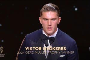 体育资讯09月23日讯 2025年金球奖颁奖典礼今日进行,约克雷斯获得今年盖德·穆勒奖!2024/25赛季,约克雷斯(俱乐部+国家队)各项赛事出场58场打进63球!
