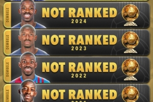 体育资讯9月23日讯 在不久前结束的金球奖颁奖典礼,登贝莱加冕2025年金球奖。
