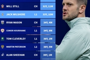 英国前四级别联赛主帅年龄排行:赫尔泽勒最年轻,威尔希尔第三