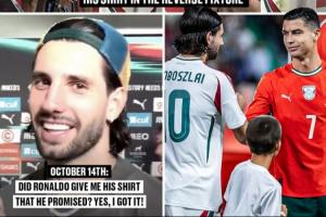 比赛结束后,索博斯洛伊接受采访,被问及C罗有没有遵守诺言把球衣给他,索博斯洛伊开心地回答道:“是的,我拿到了!”