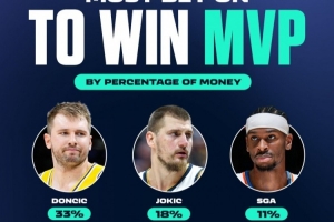体育资讯10月17日讯 ESPN报道, 根据旗下ESPN Bet的数据显示,东契奇是新赛季MVP投注选项中,投注金额最多的球员。在所有关于MVP的投注金额中,投注东契奇的比例高达33%。ESPN Bet配文:“大部分投注都押在东契奇身上,期待他拿下生涯首座MVP奖杯。”