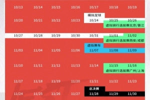 虚拟骑行线下选拔赛:10月25-11月16日