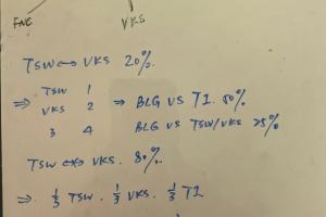 则BLG:遇到T1概率为36.7%,遇到TSW/VKS概率各为31.7%
