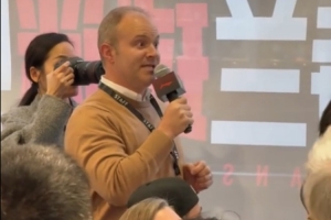 体育资讯10月22日讯 今天开拓者队记Victor Sun在社媒晒出视频,在球迷见面会上有外国球迷用不流利的中文努力向杨瀚森提问。
