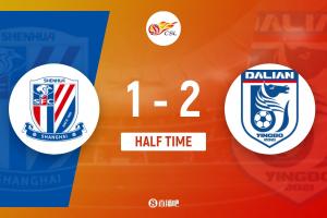 半场-上海申花1-2大连英博 吕焯毅世界波刘祝润破门吴曦推射建功