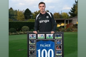 帕尔默写道:“100场!接下来还有更多!哥们我已经等不及要回归赛场了!”