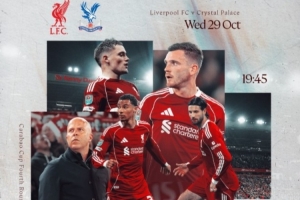 体育资讯10月29日讯 北京时间10月30日3:45,联赛杯第4轮,利物浦主场对阵水晶宫,利物浦官方发布海报预热。