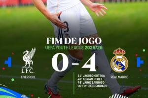 体育资讯11月05日讯 欧冠第4轮焦点战开战在即,利物浦与皇马的青年队在青年欧冠率先开打,利物浦青年队0-4遭遇惨败。