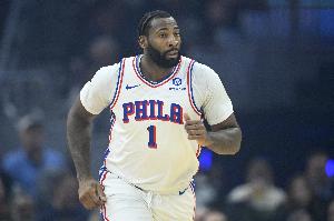 上半场比赛,76人中锋德拉蒙德首发出战18分钟,5中3,三分2中1,罚球4中3拿到10分7篮板2助攻1抢断,正负值+4。