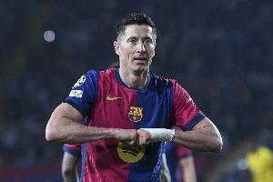 下半场节奏放缓,巴萨掌控了比赛。第73分钟,莱万多夫斯基接拉什福德开出的角球,头球破门完成帽子戏法,将比分锁定为2-4。