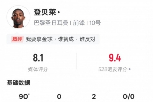 体育资讯6月1日讯 欧冠决赛,巴黎圣日耳曼5-0国际米兰,登贝莱首发出战,送出2次助攻,3次关键传球,但也错失1次进球机会,评分8.1。