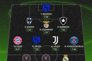 中场:奥利塞 (拜仁) 、鲁本-内维斯 (新月)、伊尔迪兹 (尤文图斯)、克瓦拉茨赫利亚 (巴黎)