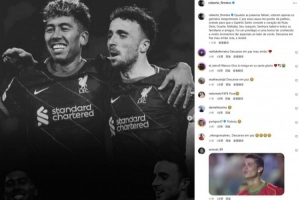 体育资讯7月3日讯 菲尔米诺今天在Instagram发文,悼念前队友若塔。