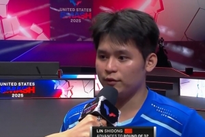 林诗栋:今天双方打的都非常好,打到了决胜局。一开始对球台不太适应,后面会好一些。